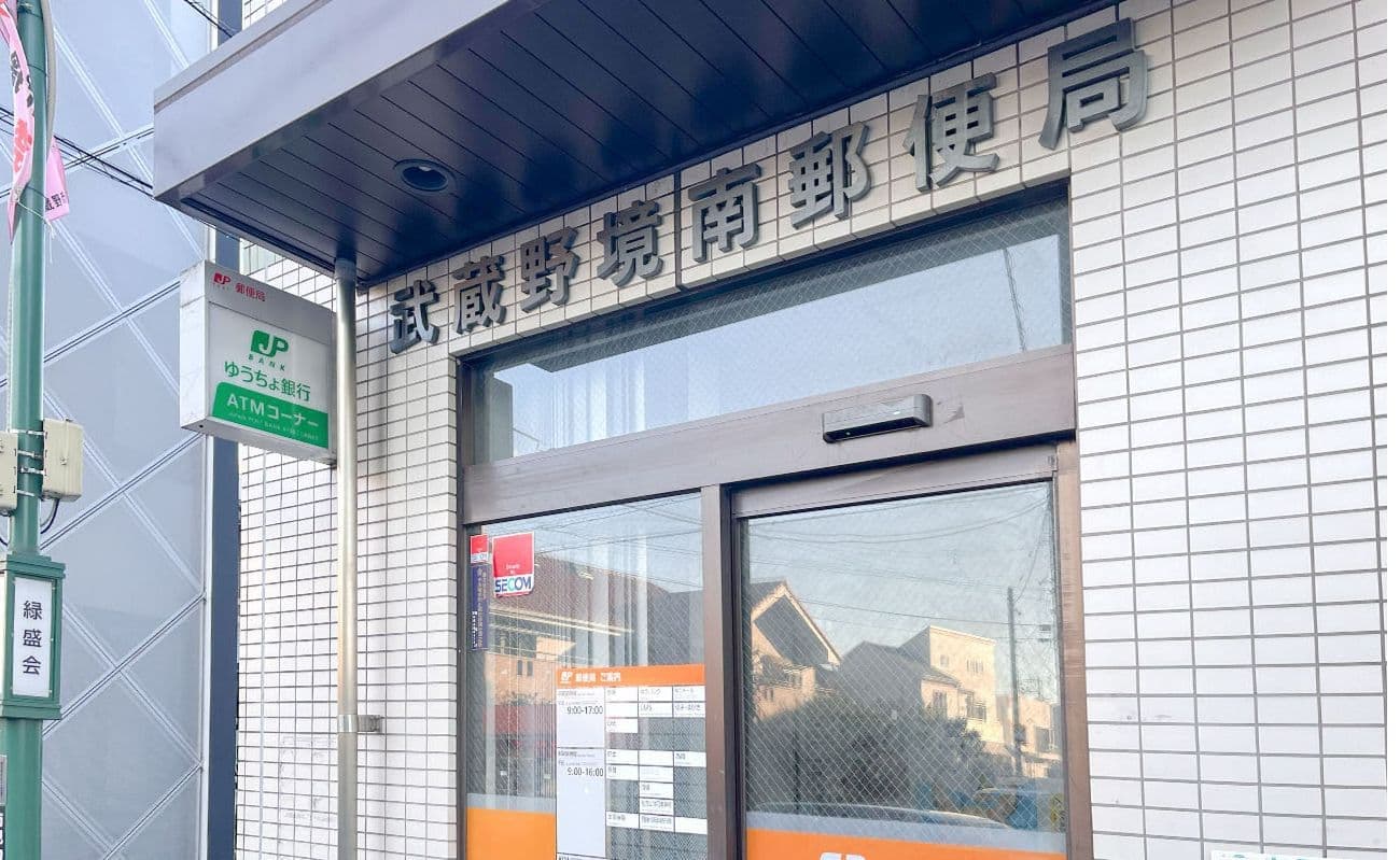 HOME | 緑盛会 | 武蔵野境南郵便局 武蔵野境南郵便局 住 所 :武蔵野市境南町3-18-13電 話 :0422-32-2480営業時間:9:00-17:00 ※貯金・保険窓口は16:00まで休業日 :土 日 祝 年末年始 HPはこちら